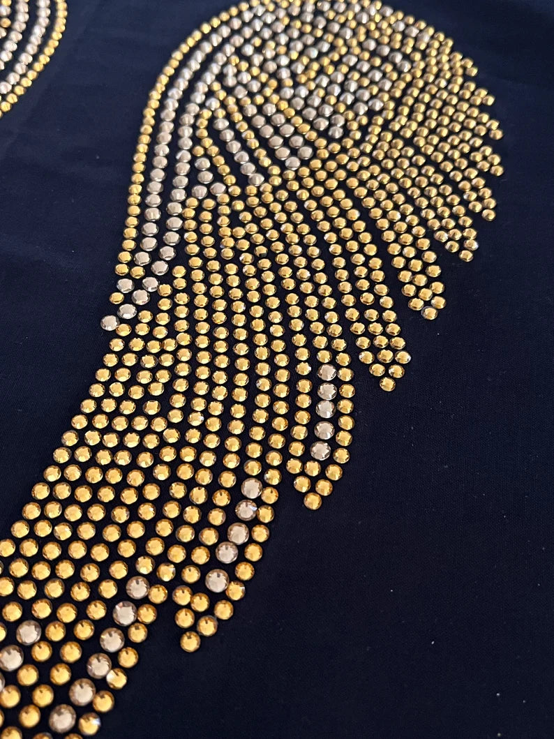 Gold Angel wing design , rhinestone gold angel wings ,heat transfer Gold angel wings for shirts , wings for angels , hot fix iron on