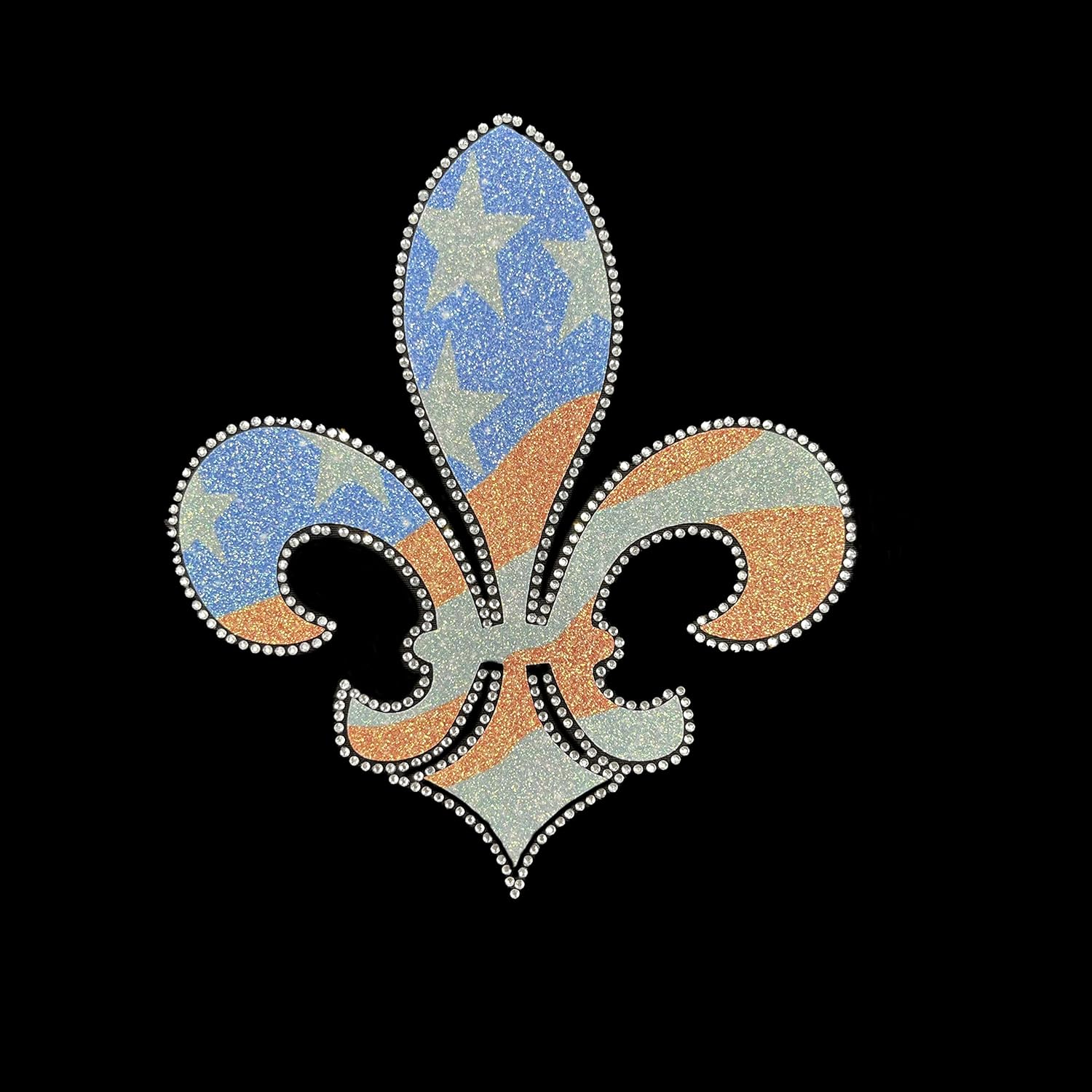 Rhinestop Glitter Flag Fleur De Lis Iron on Rhinestone Design