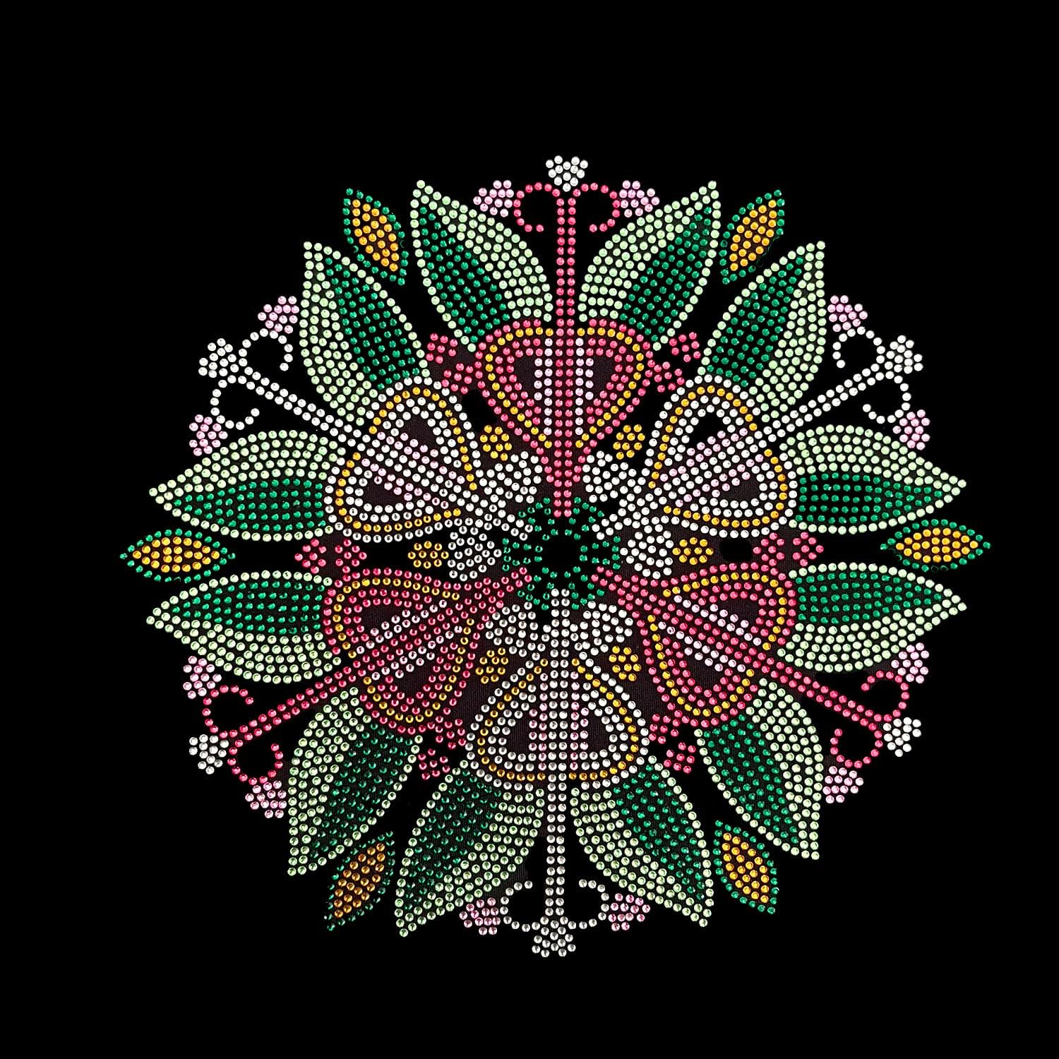 Rhinestop GreenPink Flower Mandala Iron on Rhinestone Design