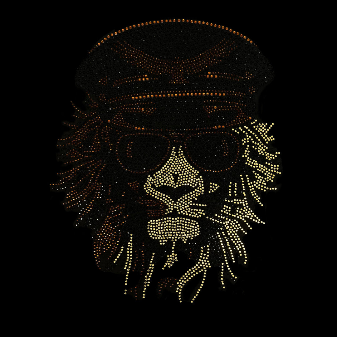 Lion with Glasses Rhinestone Heat Transfer Iron on Design By Rhinestop