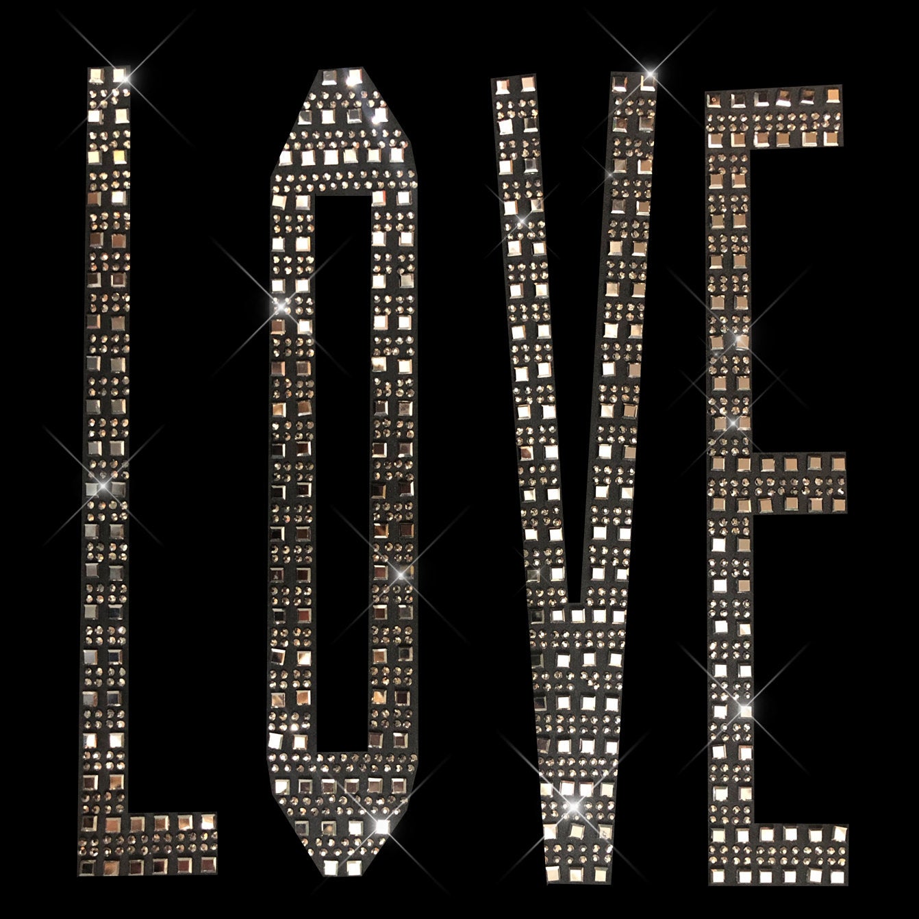 Rhinestop Silver Love Rhinestone Iron On Heat Transfer