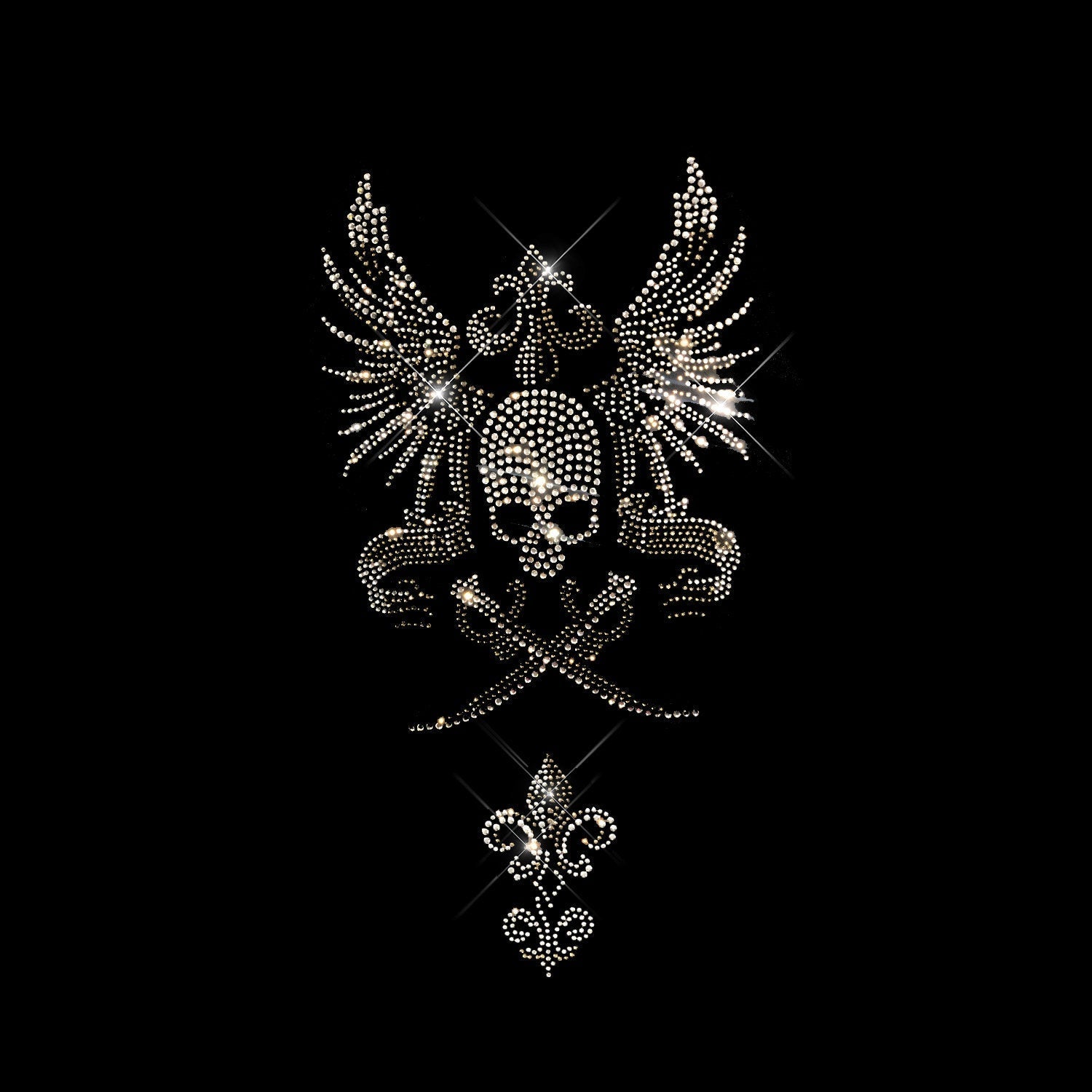 Rhinestop Swords Skull Iron on Rhinestone Design