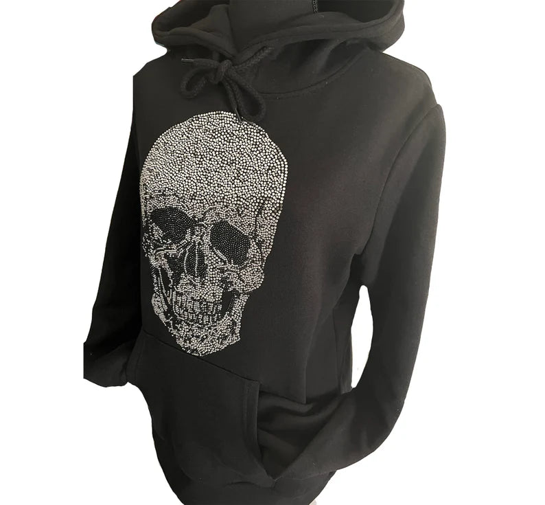 Skull Rhinestone Design Bling Stylish Hoodie By Rhinestop